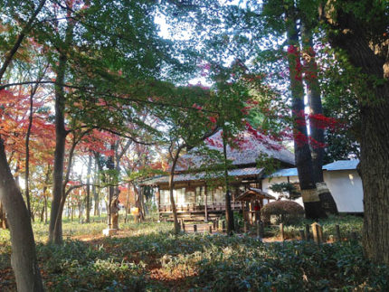 初冬の午後、紅葉している盧花旧邸です。